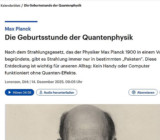 - 2025 Interview für das “Kalenderblatt” im Deutschlandfunk zur Geburtsstunde der Quantentheorie (Autor: Dirk Lorenzen)