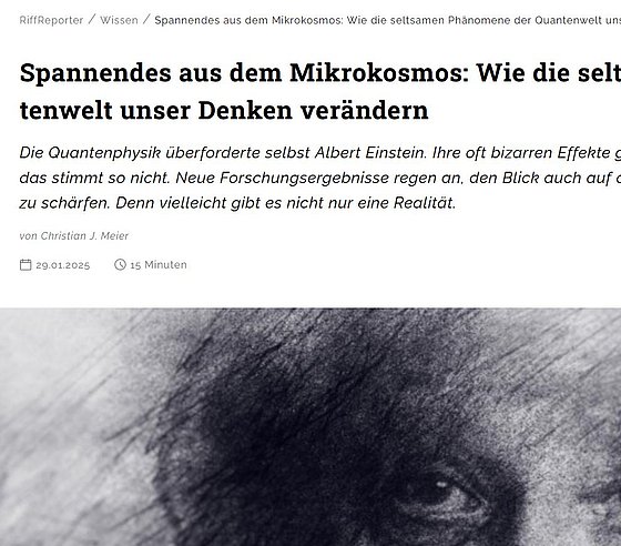 - 2025 Interview für einen Artikel im Online-Magazin Riffreporter über die Implikationen der Quantenphysik (Autor: Christian J. Meier)